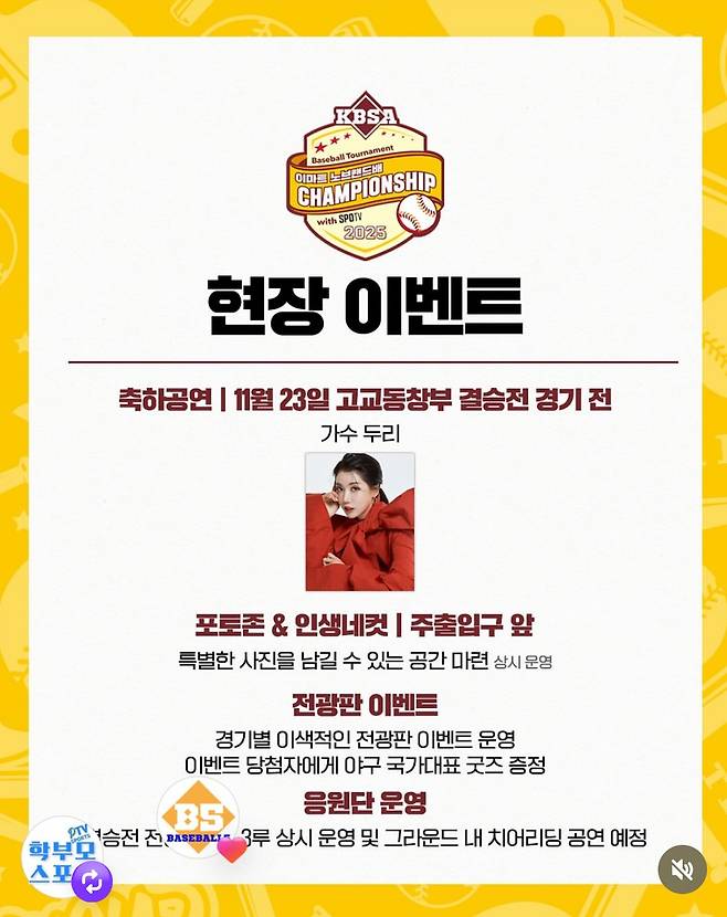 올해도 21일부터 23일까지 서울 목동야구장에서 대회가 열린다. 이번에도 야구 중계의 대명사 스포티비(SPOTV)가 함께한다. 대회 명칭은 'SPOTV와 함께하는 2025 이마트노브랜드배 챔피언십'이다.