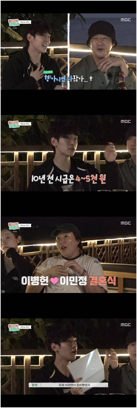 특히 강유석은 "제가 길눈이 밝다. 운전은 자신 있다"라고 말했다. 강유석은 “서울 유명 호텔에서 결혼식 할 때 새벽에 꽃을 다 세팅을 해야 하는 아르바이트를 했다. 좋은 게 뭐냐면 시급도 좋고 밥이 정말 맛있었다”라면서 “그때 너무 신기한 게 이병헌 선배님이랑 이민정 선배님 결혼식이 있던 거다. 그래서 정말 신기해하면서 꽃을 장식했다”라고 말해 모두를 깜짝 놀라게 만들었다.