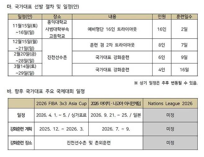 2026년 한국 3x3 대표팀을 구성하는 경향위가 열린다.
