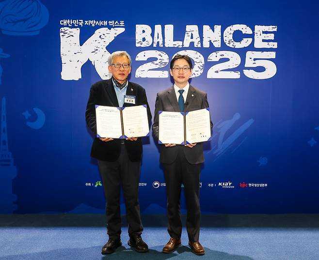 | ▲ 김경수 지방시대위원장과 유홍준 국립중앙박물관장은 11월 19일(수), 2025 대한민국 지방시대 엑스포가 열리고 있는 울산전시컨벤션센터에서 국가균형성장과 지역문화 활성화를 위한 업무협약(MOU)을 체결했다. |