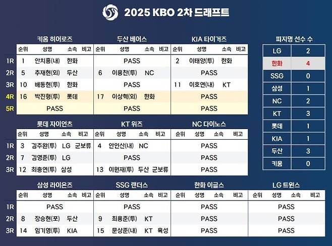 | ▲ 2025 KBO 2차 드래프트 결과(한국야구위원회 제공) |