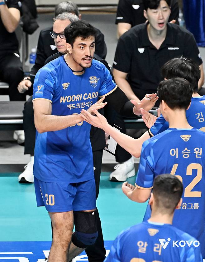 2세트에서도 동점으로 끌려가는 접전을 펼치던 우리카드는 세트 막판 아라우조의 후위 득점, 이상현의 2연속 블로킹이 터지며 세트를 연달아 가져왔다.