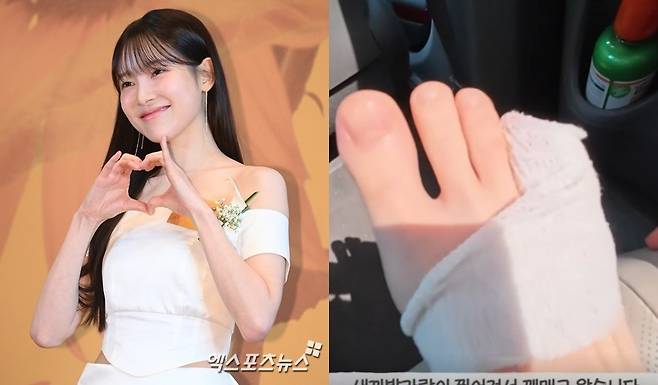 그는 "어제 캐리어를 싸다가 새끼발가락이 찢어져서 꿰매고 왔다"며 붕대로 칭칭 감은 새끼발가락을 공개했다.