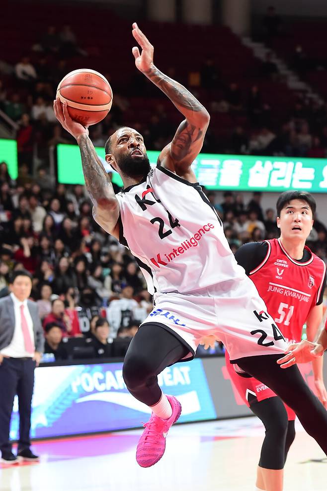 수원 KT는 19일 안양정관장아레나에서 열린 2025~2026 LG전자 프로농구 정규리그 2라운드 안양 정관장과의 경기에서 68-62로 승리했다. 시즌 9승 8패, 브레이크 전 마지막 경기에서 연패를 끊었다.