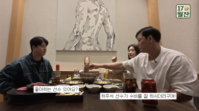 이날 게스트로 나온 노시환은 “모 유튜브에서 두 분의 연애 기간이 5년이었다고 얘기가 나왔는데, 처음 만났던 순간이 기억에 나는지?”라고 물었고, 하주석은 “처음 만났을 때부터 지금까지의 기간은 5년인데, 2번 정도? 헤어져서 각자의 길을 갔다”고 밝혔다.