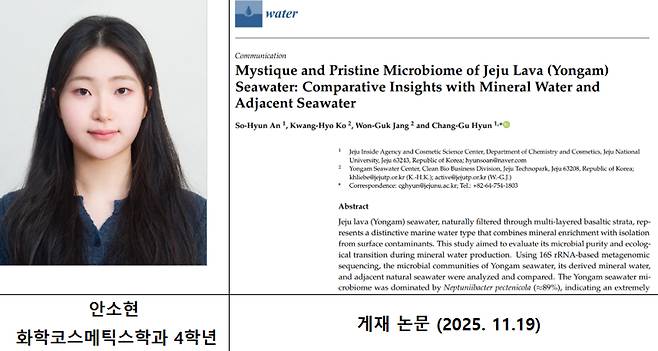 제주대학교 화학·코스메틱스학과와 제주테크노파크 연구진이 수행한 제주 용암해수(Yongam Seawater)의 미생물 생태계 분석 연구가 국제학술지 「Water」에 게재돼 눈길을 끈다.
