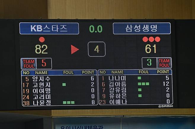 삼성생명은 19일 용인실내체육관에서 벌어진 BNK 금융 2025-26 여자프로농구 청주 KB스타즈와 경기에서 61-82로 완패했다.