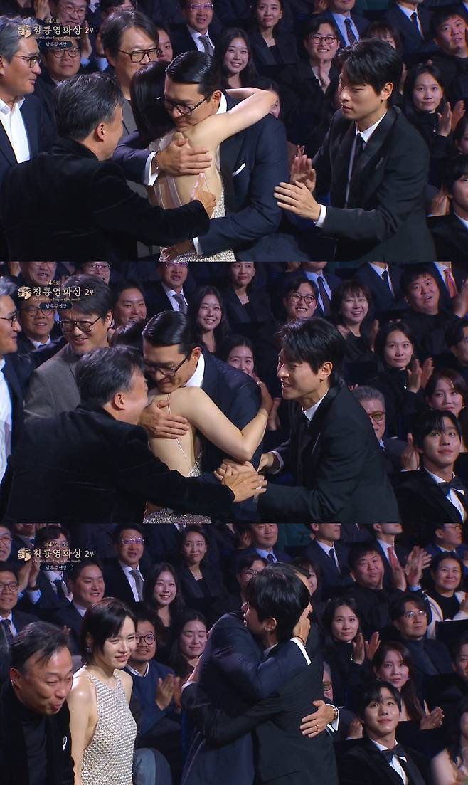 화사와 박정민의 무대를 지켜본 절친이자 청룡영화상의 MC 이제훈은 "예전에 박정민이 내게 '훌륭한 멜로 얼굴을 가졌는데 왜 사서 고생하는 작품만 선택하느냐'라는 이야기를 한 적이 있다. 오늘은 내가 그 말을 돌려주고 싶다. 박정민도 너무 훌륭한 멜로 얼굴을 가지고 있다. 많이 써먹어 달라"고 응원을 아끼지 않았다. 절친의 칭찬에 한껏 부끄러워진 박정민은 '쉿' 제스처와 함께 고개를 저어 마지막까지 장내는 물론 시청자에게 큰 웃음을 안겼다.