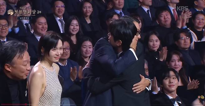 감격에 젖은 두 사람은 뜨거운 진한 포옹을 나누며 수상의 기쁨을 만끽했다.