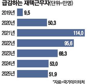 국가데이터처에 따르면 올해 국내 재택근무자 수는 51만9000명으로 2021년 팬데믹 국면(114만명)과 비교해 반 토막이 났다. 한때 새로운 유연근무 형태로 자리 잡을 것이라는 전망이 팽배했지만 유기적인 의사소통이 줄고 근무 태만 등으로 직원 관리 비용까지 늘며 분위기가 반전됐다.