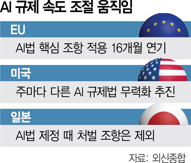 인공지능(AI) 산업 주도권을 쥐기 위해 각국에서 규제 속도 조절 움직임이 확산하고 있다. 생성형 AI 등장 이후 딥페이크 범죄나 청소년 극단 선택 등이 심각해지면서 규제 도입 필요성이 커졌지만 규제가 미래 먹거리를 책임질 유망 기업들의 발목을 잡을 수 있다는 우려가 커졌기 때문이다.