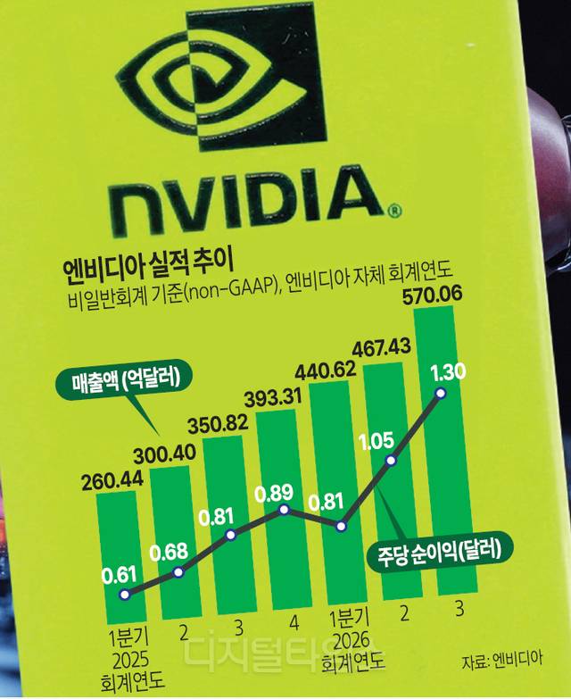 엔비디아의 이번 실적은 시장조사업체 LSEG가 집계한 시장전망치 549억2000만달러를 3%가량 웃돈다.