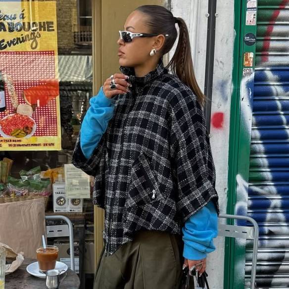 보머 나 크롭 재킷에 체크 패턴을 더하면 활용도는 더 말할 것도 없습니다. 지퍼를 끝까지 올려 단독으로 입어도, 후디나 니트와 레이어드해도 스타일은 흔들리지 않죠. 다만 칙칙한 아빠 재킷처럼 보이고 싶지 않다면, 와이드 데님으로 루스한 텐션을 만들어주는 것이 관건입니다. 그 한 끗이 룩의 감도를 확 끌어올려줄테니까요.