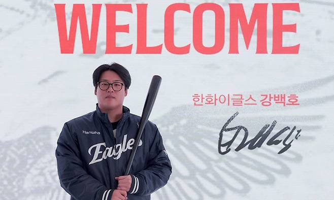 한화는 20일 "FA 강백호와 계약 기간 4년, 계약금 50억원, 연봉 30억원, 옵션 20억원 등 최대 100억원 규모에 계약을 맺었다"라고 발표했다.