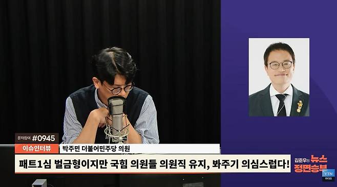 ☆김준우: 아 재판부는 지금 다릅니까? 네 그렇군요. 그래서 오늘 이 재판의 결과가 생각보다 가벼우니까, 박주민 의원님 형량은 더 가벼울 가능성이 있어서, 혹시 혼자는 사실 안도의 한숨을 쉬고 있는 거 아니냐.