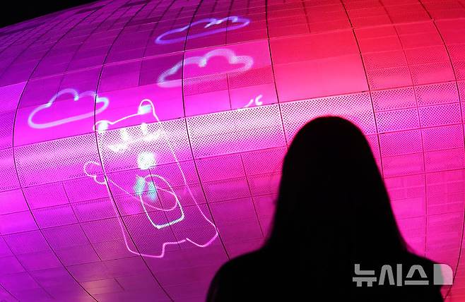 [서울=뉴시스] 최진석 기자 = 20일 서울 동대문구 동대문디자인플라자(DDP) 외벽에 미디어아트쇼 '드림 인 라이트'가 서울의 밤을 밝히고 있다.