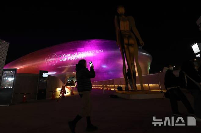 [서울=뉴시스] 최진석 기자 = 20일 서울 동대문구 동대문디자인플라자(DDP) 외벽에 미디어아트쇼 '드림 인 라이트'가 서울의 밤을 밝히고 있다.