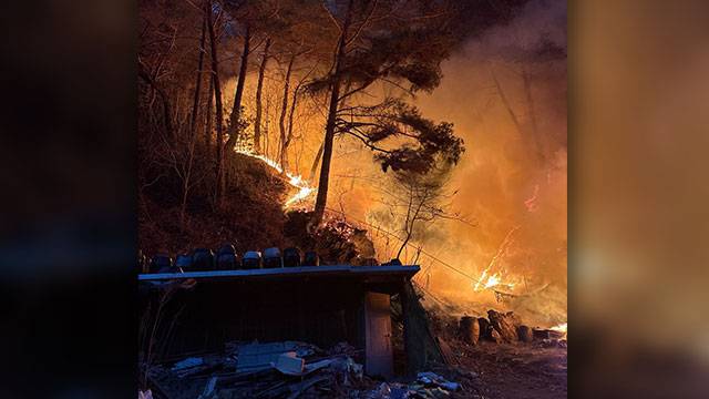 강원도 인제군 산불 12시간째 계속…일출 뒤 헬기 투입 예정