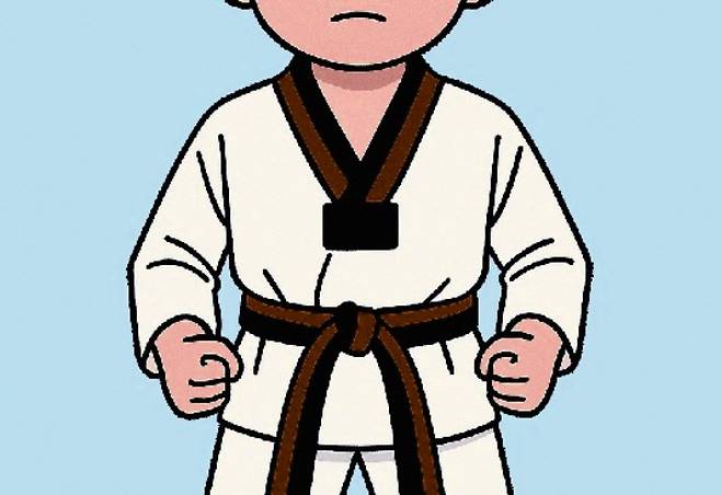 같은 학원에 다니는 우리 아이들은 보라띠, 바짓단이 짤따란 도복 차림의 현오는 벌써 품띠를 매고 있었다.