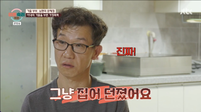 아내는 남편에게 "애 5살 때였나. 너 애 던졌잖아. 들어서"라며 과거 충격적인 폭행 사실을 상기시켰다.