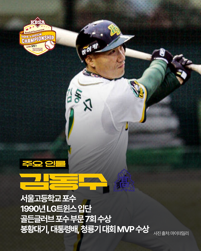 각 팀을 대표하는 선수(?)들도 등장한다. 현역 시절 최고의 포수 중 한 명이었던 김동수 서울고 감독이 방망이를 잡는다. 제자들 앞에서 망신당하지 않으려면 집중 또 집중해야 한다.