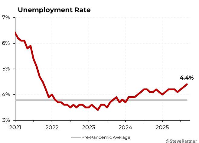 ▶에버코어ISI는 "9월 비농업 고용은 (추가 하향 조정을 가정해도) 괜찮은 수치다. 실업률은 매월 변동성이 클 수 있으며, 이번은 노동 공급 증가라는 더 건강한 배경에서의 상승이었다. 향후 두 달간 고용보고서는 부진할 것으로 보인다. 그러나 낮고 안정적인 실업수당 청구 건수는 노동시장에 붕괴 조짐은 없다는 점을 시사한다. 12월 어떤 결정이든 FOMC 내부의 분열을 초래할 것"이라고 밝혔습니다.