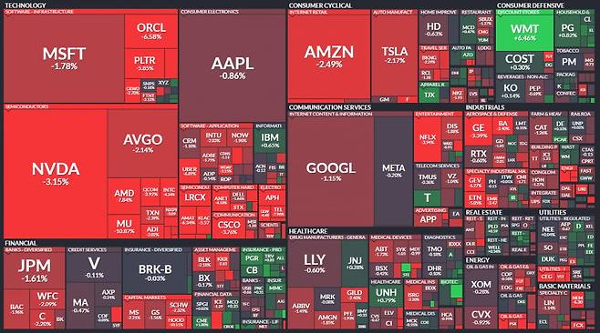 매그니피센트 7 주식도 모두 내렸습니다. 아마존이 2.49%, 테슬라가 2.17% 내렸고요. 끝까지 오름세를 고수하던 알파벳도 1.15% 떨어졌습니다.