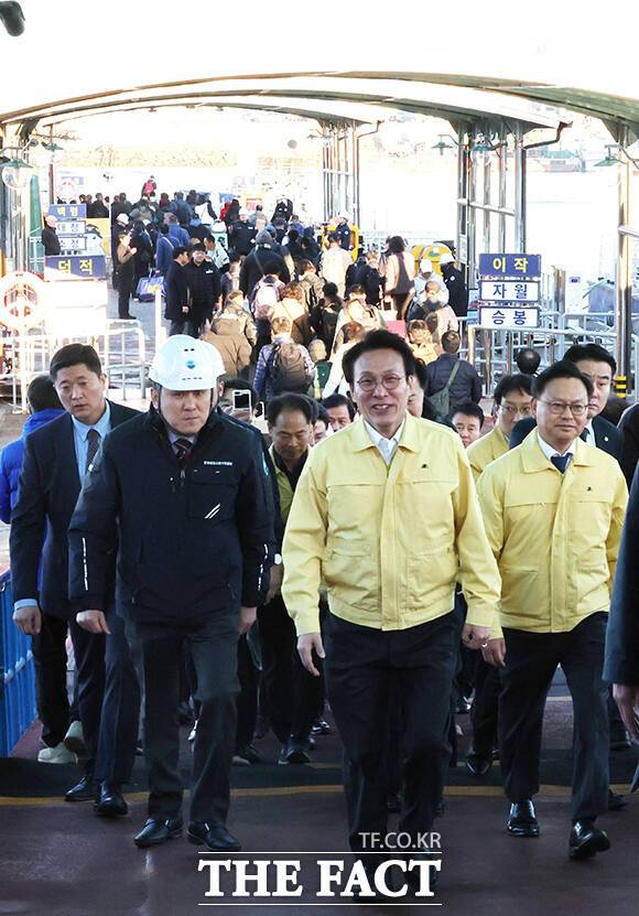 [더팩트ㅣ임영무 기자] 김민석 국무총리가 21일 오전 동절기 해양안전사고 예방차 인천 중구 인천연안여객터미널을 찾아 탑승객들과 인사하고 있다.