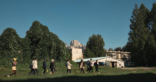 영화는 사진작가 출신인 이성민 감독의 장편 다큐다. 지금은 재개발이 진행된 강남 개포 주공 1단지에서 지난 2017년부터 나무를 기록하고 기억하며 지키는 운동을 펼쳐왔던 이성민의 이야기가 한 편의 영화로 화했다. 초등학교 1학년 때 이곳으로 전학 와 12년을 살고 고등학교를 졸업할 무렵이 되어 경기도로 떠났다는 감독이다. 사진작업을 하며 언젠가 고향에 다시 가 보아야겠다고 막연하게 생각했다던 감독의 시선이 재개발을 앞둔 아파트 단지의 나무들에 가 닿은 건 정말로 우연한 일이었을까.