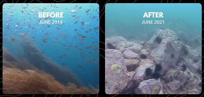 | ▲ 2014년과 2021년에 찍은 바닷 속 모습 |