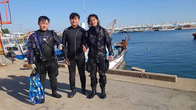 늦가을 바람이 차가웠던 지난 10월 울진 직산항, 잠수복을 입은 세 청년이 뭍으로 올라왔습니다. 한국에서 민간 주도로 바다 생태계 복원 사업을 선도하고 있는 사회적협동조합 오션캠퍼스의 윤병현(30), 서보국(29) 전형훈(31) 팀장입니다.