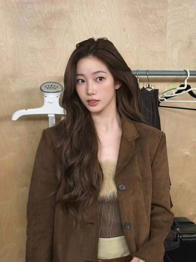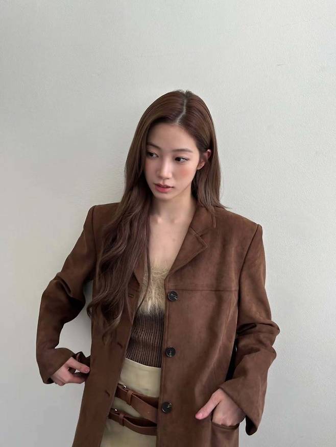 브라운 재킷 하나로 우아미 장착한 비주얼