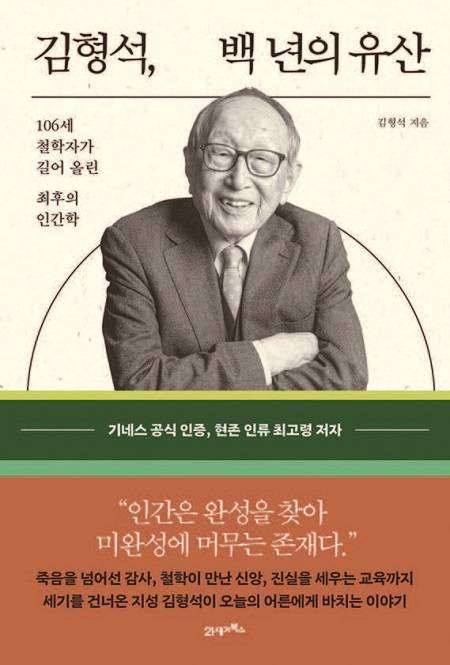 지난해 9월 ‘세계 최고령 저자’로 기네스북에 오른 김형석 연세대 명예교수의 철학적 사유를 담은 에세이다. 106세 철학자는 사랑과 양심, 자유와 감사라는 평생 신념을 바탕으로 시대의 냉소를 넘어, 인간이 인간으로 남기 위한 최소한의 윤리를 되묻는다. 삶과 죽음, 개인과 공동체를 아우르는 사유를 따스한 언어로 엮어낸 책은 김 교수의 철학이 응축된 인간학의 기록이다.