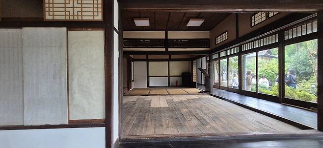 | ▲ 신흥동가옥내부. 유리창 너머로 건네본 일명 '히로쓰가옥'의 내부다. 다다미방이나 넓은 복도 등이 이국적이다. |