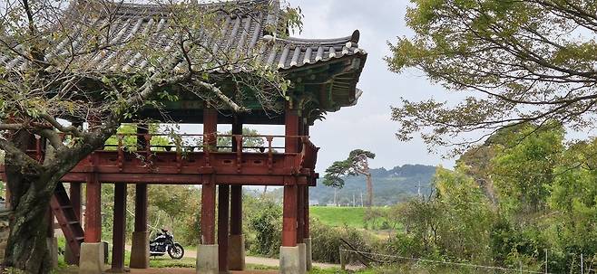 어디가 읍성이란 말인가? 좁은 농로 한편에 오토바이를 세우고 지도를 자세히 들여다본다. 아뿔싸. 지금 지나온 두 곳의 돌담 사이가 각각 동문지와 서문지였다. 복원된 성문도 없고, 변변한 주차장도 없으니 도착했어도 도착한 인식을 못했다. 지도를 확대해 보니 학교 뒤편 북쪽 성벽에 관아 건물이 몇 보였다. 학교를 다시 돌아 얼마쯤 가니 고식의 2층 문루가 보였다. 그 앞에 오토바이를 세운다. 조선 세종 대에 석성으로 완성된 남포읍성이다.