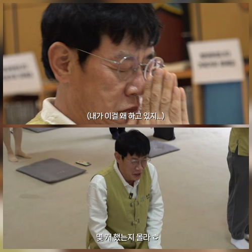 이경규는 이날 108배 체험에 나섰다. “예전에 해봤는데 진짜 힘들다”고 너스레를 떨었지만, 막상 시작하자마자 혼자만 뒤처졌다. 모두가 108배를 끝낼 때 그는 30배를 채우고 “이 정도면 충분하다”며 웃어 보였다.