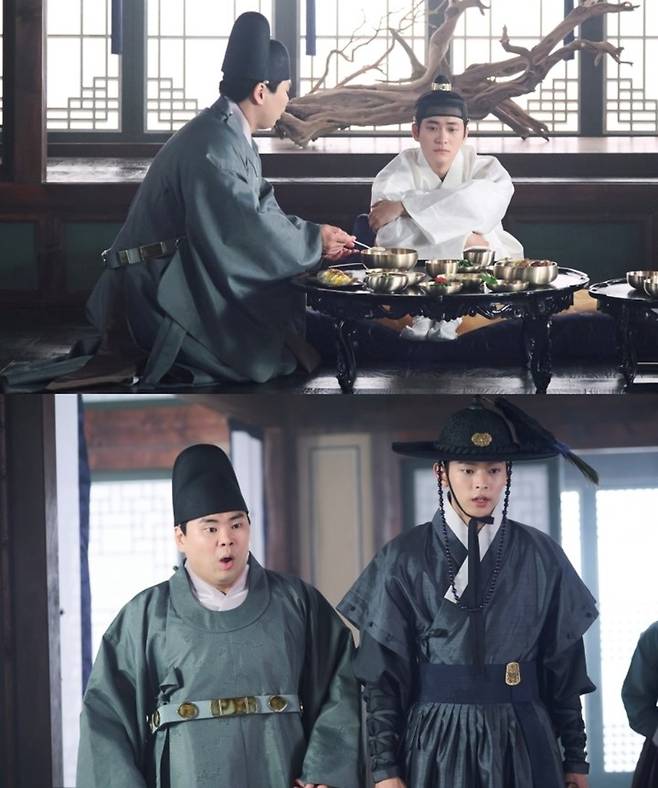 공개된 스틸컷에는 세자의 몸에 갇힌 박달이의 억울하고 당혹스러운 모습이 포착됐다. 평소의 안하무인 세자와 달리, 주눅 든 자세와 근심 가득한 눈빛을 한 '가짜 이강'은 수라상을 마다하는 등 기이한 행동을 보여 최측근인 익위사 오신원(권주석)과 내관 윤세돌(한상조)을 당황하게 만든다.