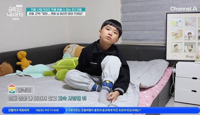 이날 스튜디오에는 초2 아들을 혼자 키우는 싱글맘이 출연했다. 금쪽이 엄마는 "아들은 원래 밝고 착한 성격인데, 6살 중반부터 틱 증상이 시작됐다. 증상이 엄청 심하다. 가만히 있고 싶어도 몸이 통제가 안 되니까 통증을 호소하더라"며 고민을 털어놨다.