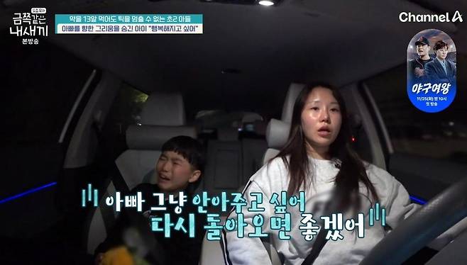 집으로 가는 차 안에서도 금쪽이는 "가족인데 아빠도 못보니까 너무 속상해. 아빠 보고싶어. 아빠가 다시 돌아왔으면 좋겠어"라며 오열했다. "아빠 보고싶을 때 어떻게 참냐?"는 엄마의 질문에 금쪽이는 "어떻게든 참으려고 노력해. 엄마 안 보이게 울고 있어. 다시 행복해지고 싶어"라고 말해 보는 이들을 눈물 짓게 했다.
