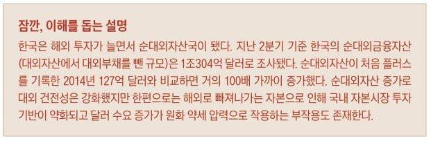 하지만 겉으로 드러난 흑자 뒤에는 ‘달러 유출’이라는 그림자가 있다. 올해 1월부터 9월까지 경상수지는 827억7000만 달러 흑자를 냈다. 같은 기간 직접투자(206억 달러)와 증권투자(603억9000만 달러) 부문에서 810억 달러에 가까운 적자가 발생했다. 경상흑자로 벌어들인 달러가 금융계정을 통해 대부분 해외로 빠져나간 것이다.