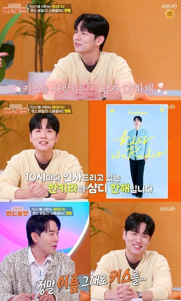 한해는 최근 KBS 쿨FM '한해의 키스 더 라디오' DJ를 맡아 청취자를 만나고 있다. 그런 한해를 붐은 "키스를 사랑하는 남자"라고 소개했다.