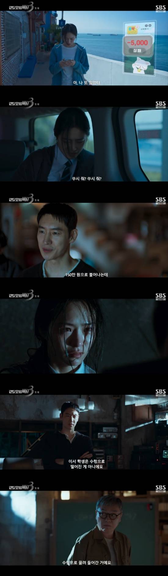 지난 21일 첫 방송된 SBS 새 금토드라마 '모범택시3' 1회에서는 피해자를 위해 뭉친 김도기(이제훈 분), 장성철(김의성), 안고은(표예진), 최주임(장혁진), 박주임(배유람)의 모습이 그려졌다.