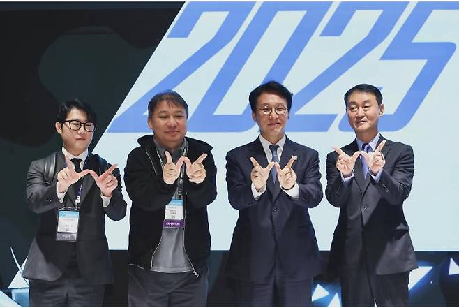 ◇ 박재홍> 그렇군요. 유익한 사업을 많이 진행하시면 좋겠고. 최근에 김민석 총리와 함께 부산 지스타도 다녀오셨네요. 저희가 사진을 준비했는데 한번 볼까요? 우리 오창석 이사장님 맨 왼쪽에 김민석 총리님. 죄송하지만 키순으로 서신 건 아니시죠? 이게 약간 사진이 공교롭게.