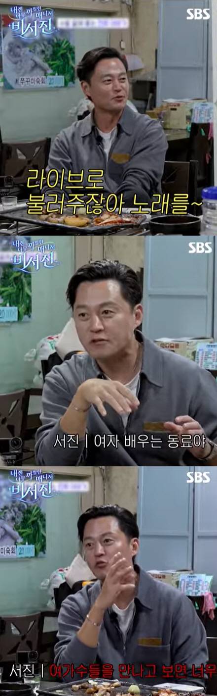 이서진은 "정석이는 모르겠지만 난 어릴 때 그런게 있었다"며 "여자 배우는 동료야. 여자 가수는 약간 스타야. 그래서 여가수들을 만나고 보면 너무 신기하고 좋았어"라고 과거 열애를 소환했다.