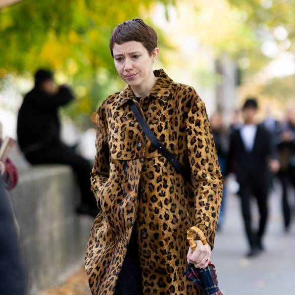 컬러 매치의 달인 린드라 매딘이 레오파드 코트를 가지고 노는 방법은 참으로 흥미롭습니다. 그러데이션이 들어간 데님 셔츠와 날이 선 올리브 컬러 바지를 입고 유니크한 클로그로 발 끝에 포인트를 줬네요. 이왕 애니멀 프린트로 과감해지기로 했다면 그녀처럼 과감한 스타일링을 시도해봐도 좋겠어요.