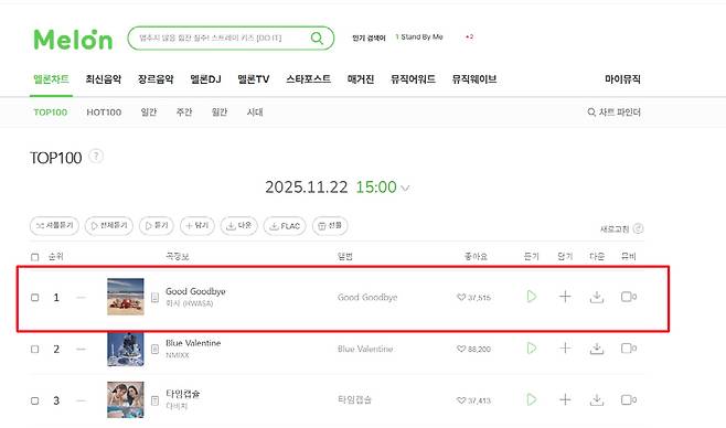 한 달 전 발매한 곡으로 국내 음원차트를 다시 싹쓸이 했다. 심지어 화사는 얼마전 음악방송도 마지막 출연하며 해당 곡의 활동을 모두 끝낸 상태였다.