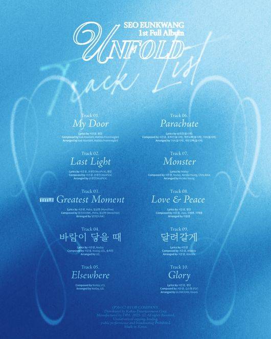 소속사 비투비 컴퍼니는 지난 21일 오후 6시 공식 SNS를 통해 서은광의 첫 번째 정규 앨범 '언폴드(UNFOLD)' 트랙리스트를 공개했다.