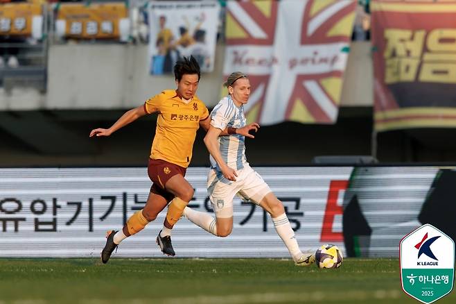 광주가 사실상 쐐기를 박았다. 후반 30분 교체 투입된 최경록이 왼쪽 측면에서 올라온 하승운의 크로스를 문전에서 발만 갖다대는 슈팅으로 마무리했다. 오프사이드가 아닌 완벽한 노마크 상황에서 나온 확실한 마무리였다.