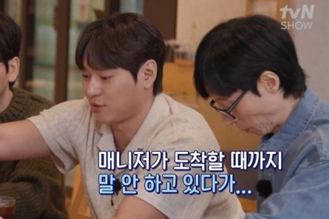 유재석은 고경표의 매니저가 보이지 않자 "지난주 일로 매니저 바뀐 것 아니냐"라고 의심을 드러냈다.