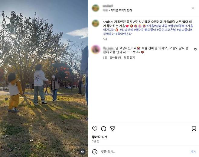 영상이 공개된 후 많은 분들이 삼남매의 매력에 푹 빠져 근황을 묻기도 했는데요. 얼마 전 독감에 걸려 고생했지만 지금은 다 나아서 가을소풍까지 다녀왔다고 합니다.